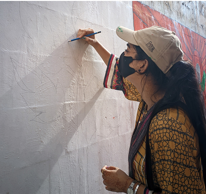 রং-তুলিতে পিরোজপুরের জরাজীর্ণ দেয়াল সাজাচ্ছেন শিক্ষার্থীরা