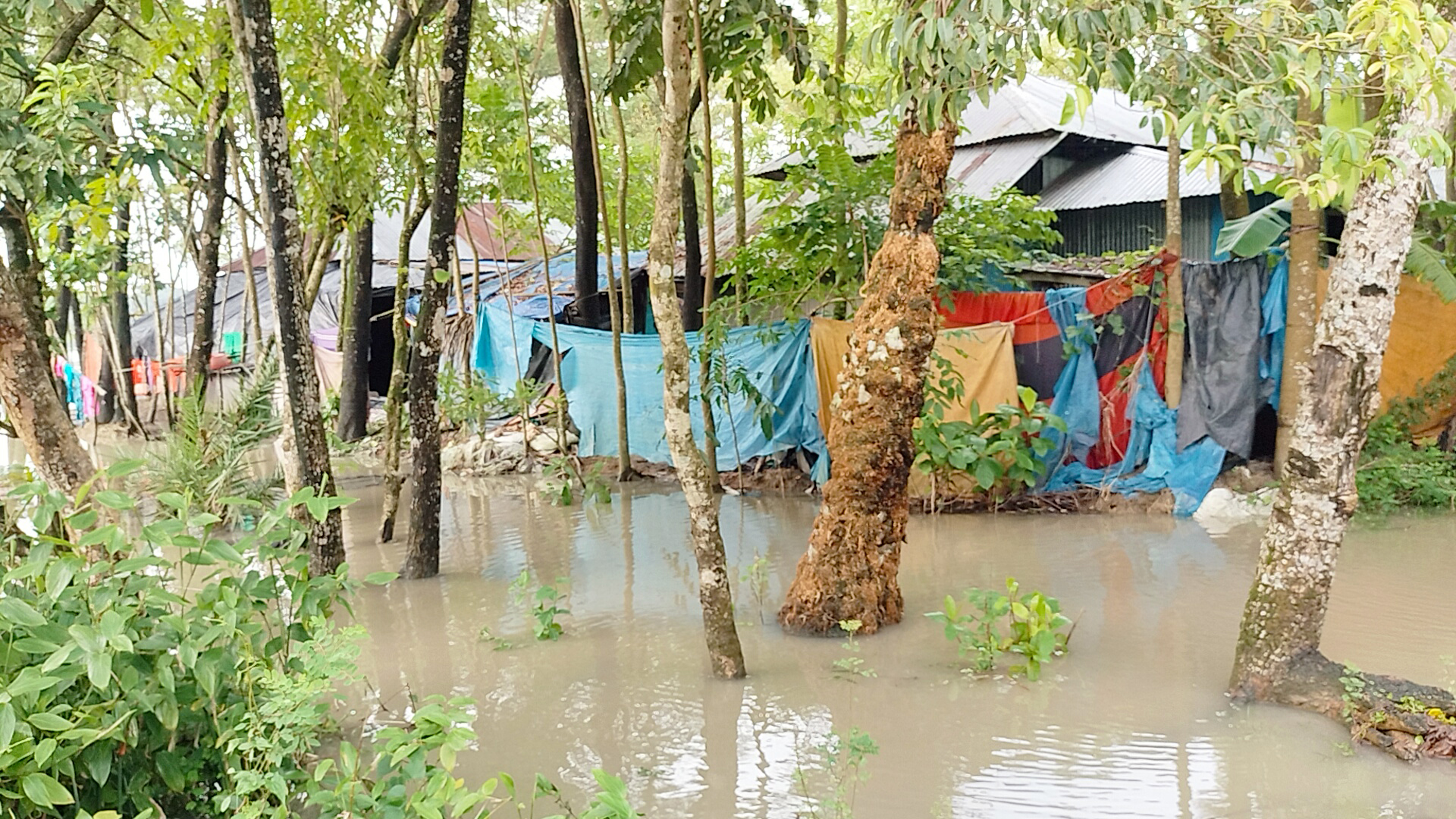 ইয়াছমিন বেগম বলেন, গত কয়েকদিন ধরে প্রচণ্ড বৃষ্টি হচ্ছে। এরমধ্যে জোয়ারের পানিতে বাড়িঘর সব ডুবে থাকে। এমন অবস্থায় ঘর থেকে বের হওয়া যায় না। রান্না-বান্না করতে সমস্যা হয়। ছেলে-মেয়ে স্কুল-মাদরাসায় যেতে পারে না।