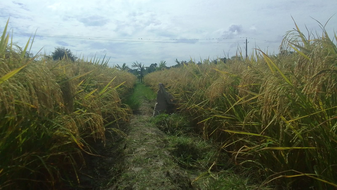 ডোমারে আলু উৎপাদনের খামারে আউশ ধানের বাম্পার ফলন