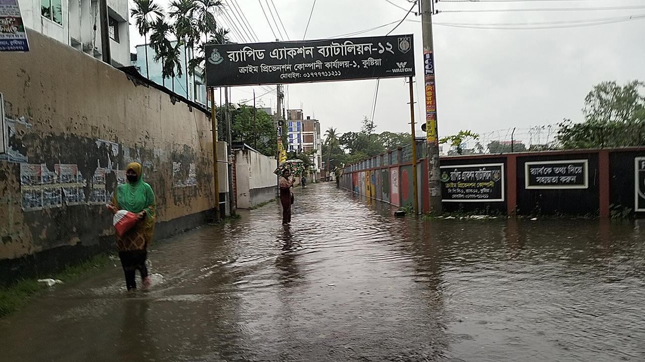 বৃষ্টির পানি জমে সড়ক যেন নদী, চরম দুর্ভোগে কুষ্টিয়ার মানুষ