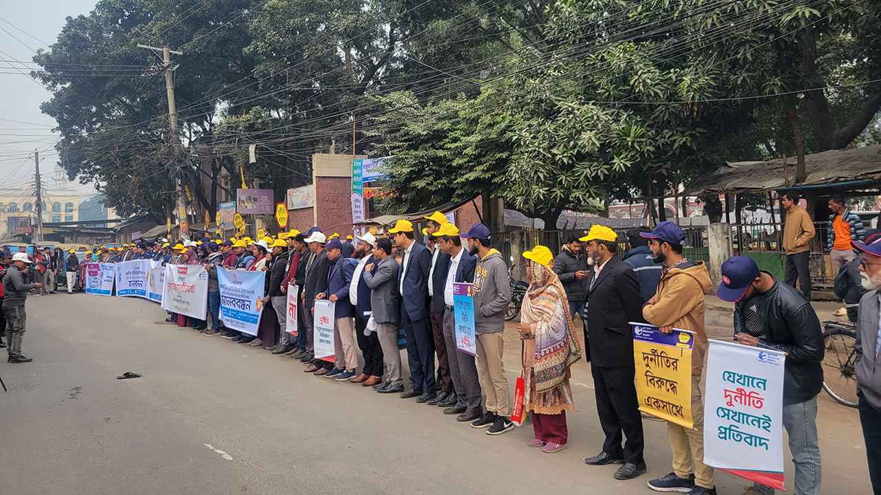 রংপুর জেলা প্রশাসন ও দুর্নীতি দমন কমিশন (দুদক) রংপুরের উদ্যোগে সচেতন নাগরিক কমিটি (সনাক)-টিআইবি ও জেলা দুর্নীতি প্রতিরোধ কমিটি (দুপ্রক) রংপুর-এর সহযোগিতায় মানববন্ধন ও আলোচনা সভার আয়োজন করা হয়।