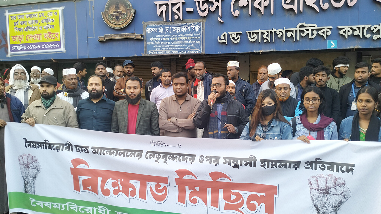 এর আগে, শনিবার (১৪ ডিসেম্বর) সন্ধ্যা ৭টার দিকে শহরের কুষ্টিয়া পৌরসভা চত্বরে পিঠা উৎসবে গেলে বৈষম্যবিরোধী ছাত্র আন্দোলন কুষ্টিয়া জেলা শাখার সদস্যসচিব মোস্তাফিজুর রহমান, যুগ্ম আহ্বায়ক সায়াদ ইসলাম শ্রেষ্ঠ, হুমাইরা কবির সাদিয়া, মুখ্য সংগঠক এম ডি বেলাল হোসেন বাঁধনসহ কয়েকজনের ওপর হামলা করে হয়। নিষিদ্ধ ঘোষিত ছাত্রলীগ ও কিশোর গ্যাংয়ের সদস্যদের বিরুদ্ধে অস্ত্র নিয়ে হামলা ও মারপিট করার অভিযোগ উঠেছে। এতে কয়েকজন আহত হয়েছেন। এ ঘটনায় জড়িতদের দৃষ্টান্তমূলক শাস্তির দাবিতে সংবাদ সম্মেলন ও বিক্ষোভ মিছিল করেছেন বৈষম্যবিরোধী ছাত্র আন্দোলনের নেতারা। রোববার সকালের দিকে কুষ্টিয়া প্রেসক্লাবে এ সংবাদ সম্মেলন ও বিকেলের দিকে সাদ্দাম বাজার মোড়ে বিক্ষোভ মিছিল করেন। এ সময় হামলাকারীদের দৃষ্টান্তমূলক শাস্তির দাবি জানান তারা।