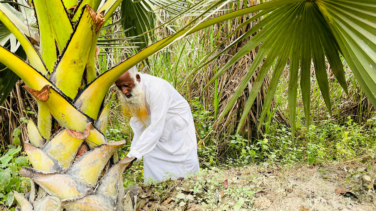 শীতের তীব্রতায় যখন অনেকে ঘরে বসে উষ্ণ আবহে থাকেন, তখনো হিমেল হাওয়ার মধ্যে রাস্তার পাশে তালগাছের পরিচর্যা করতে দেখা যায় ৭১ বছর বয়সী খোরশেদ আলীকে। শুধু শীত নয়, গ্রীষ্মের অসহনীয় গরম কিংবা বর্ষাকালের প্রবল বৃষ্টিতেও একই কাজ করেন তিনি। দীর্ঘ ১০ বছর ধরে এভাবেই প্রতিদিন ভোরে প্রয়োজনীয় সরঞ্জামসহ একটি মোটরসাইকেল নিয়ে বেরিয়ে পড়েন। তারপর গাছের পরিচর্যায় ব্যস্ত সময় পার করেন বৃক্ষপ্রেমী খোরশেদ আলী।