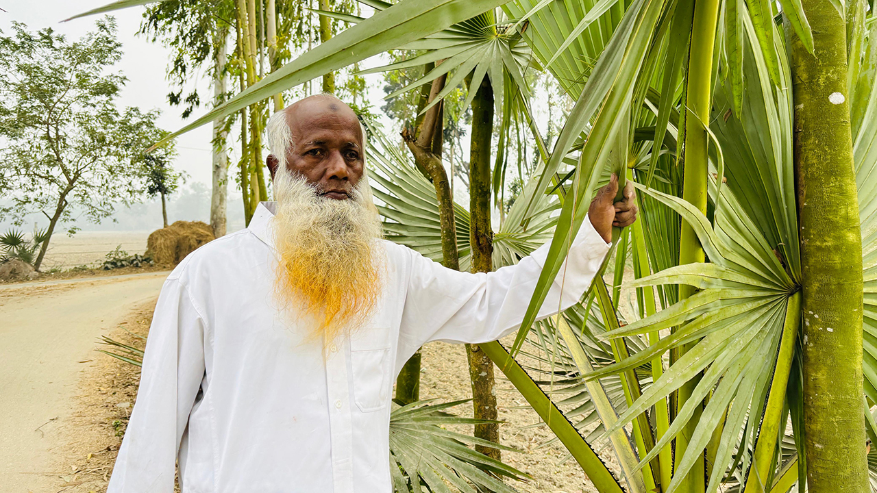খোরশেদ আলীর বড় ছেলে মোজাম্মেল ইসলাম বলেন, জমি বিক্রি করে বাবা তালগাছ লাগাতেন। প্রথমে বাধা দিলেও এখন ভালো লাগে।