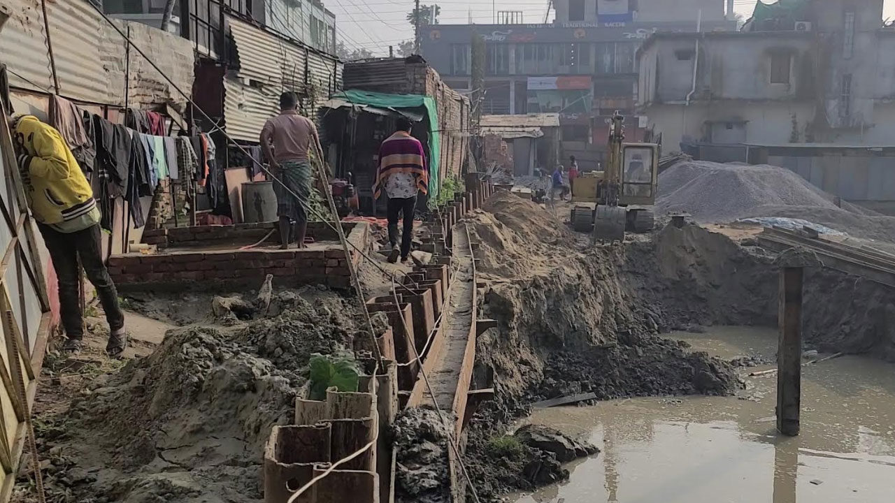 বহুতল ভবনের পাইলিংয়ের কারণে ভেঙে গেছে সড়ক-দোকানপাট-কবরস্থান