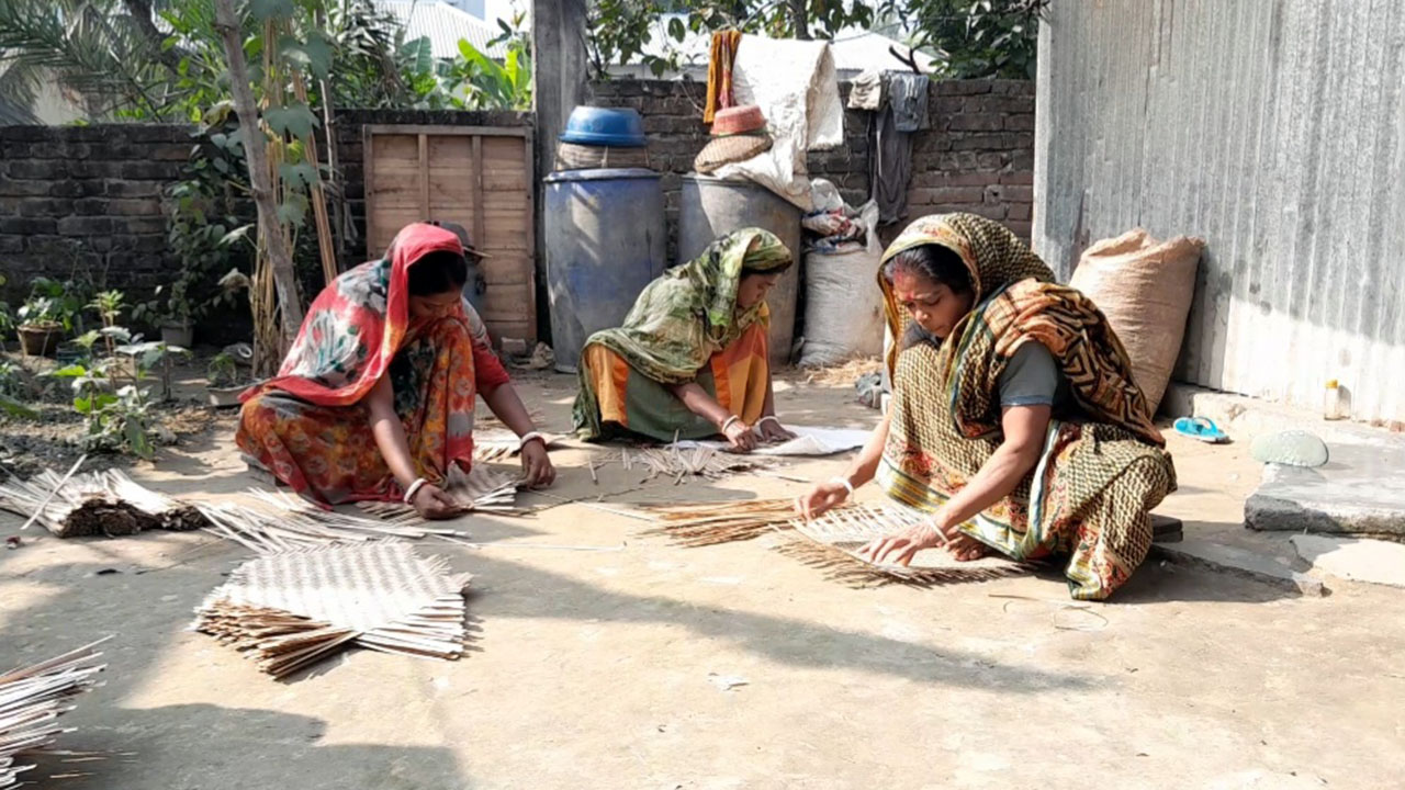 নারী কুটির শিল্পী দূর্গা রানী দাস, মালা রানী দাস ও অপর্ণা দাস বলেন, পরিবারের পুরুষ সদস্যরা বাঁশ কিনে এনে কেটে চটা বানিয়ে দেন। পরে আমরা বুনে ডালা, কুলা, চালুনি, খালুইসহ বিভিন্ন জিনিস তৈরি করি এবং সেগুলো রঙ করে দিই। একবারে ৫০-৬০ পিস হলে বিভিন্ন হাটে নিয়ে বিক্রি করা হয়।