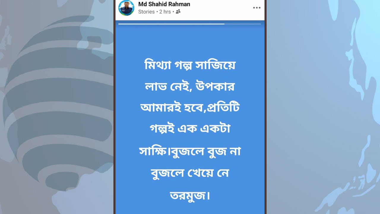 এ অবস্থায় রোববার (২০ এপ্রিল) সকালে সেই ওসি নিজের ফেসবুক আইডিতে একটি স্ট্যাটাস দিয়েছেন। সেখানে তিনি লিখেন, ‘মিথ্যা গল্প সাজিয়ে লাভ নেই, উপকার আমারই হবে, প্রতিটি গল্পই এক একটা সাক্ষী। বুঝলে বুঝ, না বুঝলে খেয়ে নে তরমুজ।’