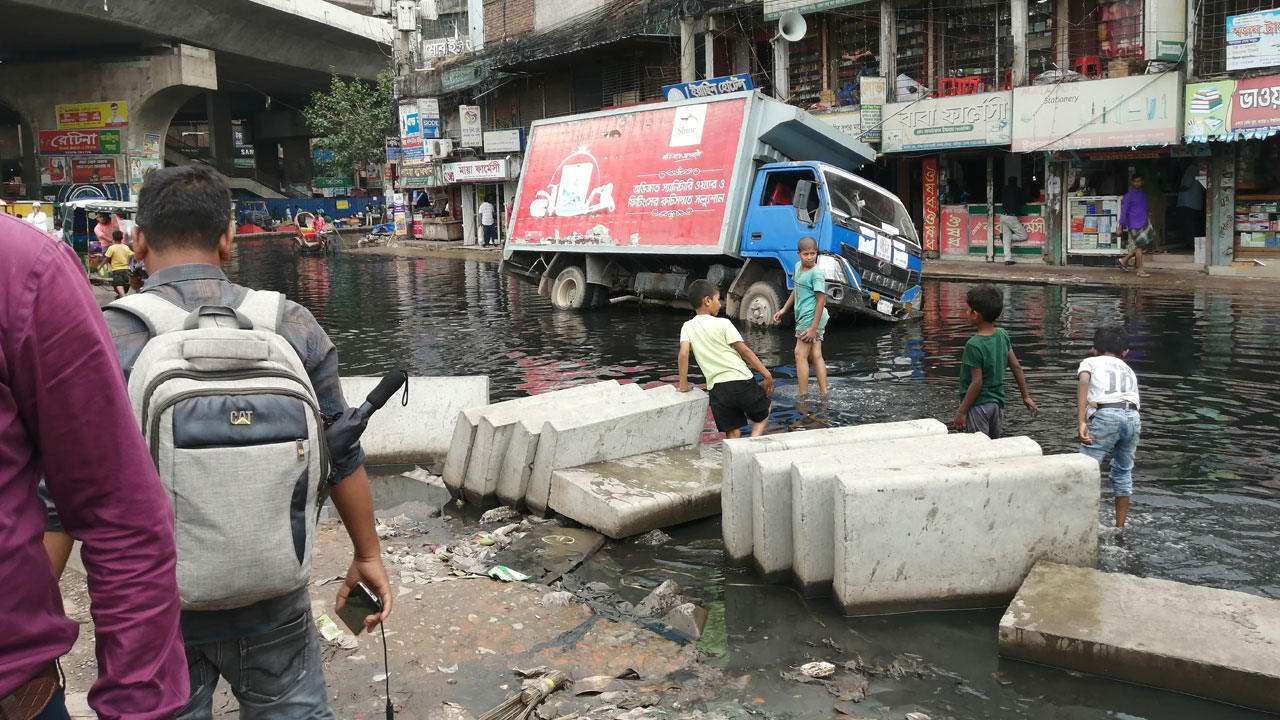 ঢাকা-ময়মনসিংহ মহাসড়কের গাজীপুরের চান্দনা চৌরাস্তা এলাকায় ভারী বৃষ্টিপাতে পানি নিষ্কাশনের পথ বন্ধ হয়ে যাওয়ায় জমে থাকা পানিতে দুর্ভোগে পড়েছেন পথচারী, চালক, যাত্রী ও স্থানীয়রা। টাকা ১০ দিন ধরে সৃষ্ট জলাবদ্ধতায় দুর্ভোগ চরম আকার ধারণ করলেও সমস্যা সমাধানে এখনো কোনো কার্যকর উদ্যোগ নিতে দেখা যায়নি গাজীপুর সিটি কর্পোরেশন, সড়ক ও জনপথ বা বাস র্যাপিড ট্রানজিট (বিআরটি) প্রকল্প সংশ্লিষ্টদের।