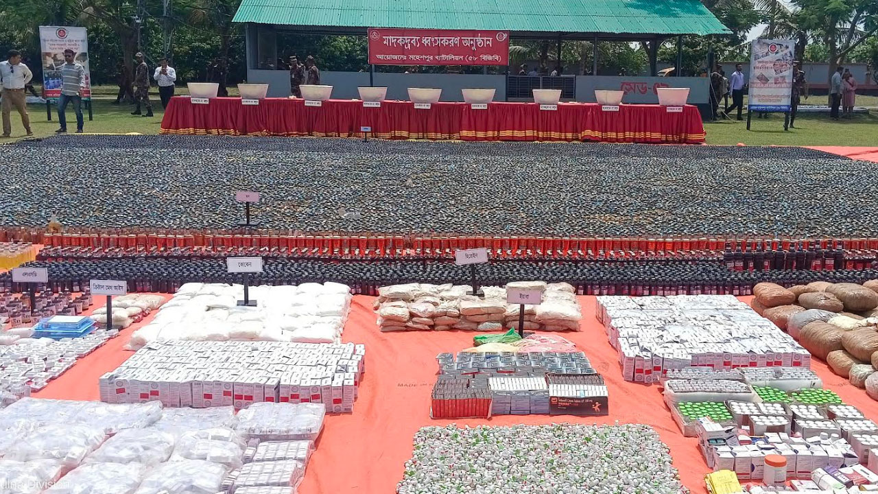 মহেশপুরে বিজিবির জব্দ করা ১১৯ কোটি টাকার মাদকদ্রব্য ধ্বংস