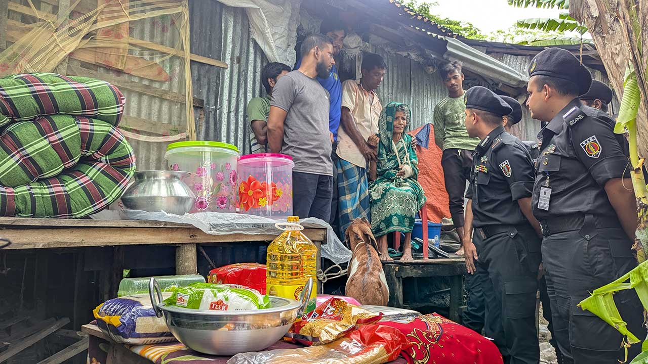 র্যাবের পক্ষ থেকে মানবিক সহায়তা হিসেবে খাদ্য সামগ্রী, কাপড়, বিছানা সামগ্রী, ওষুধ সামগ্রী এবং একটি পালন যোগ্য ছাগল পরিবারটির হাতে তুলে দেওয়া হয়েছে। এসময় পরিবারের সদস্যরা আবেগ আপ্লুত হয়ে র্যাব সদস্যদের প্রতি কৃতজ্ঞতা প্রকাশ করেন।