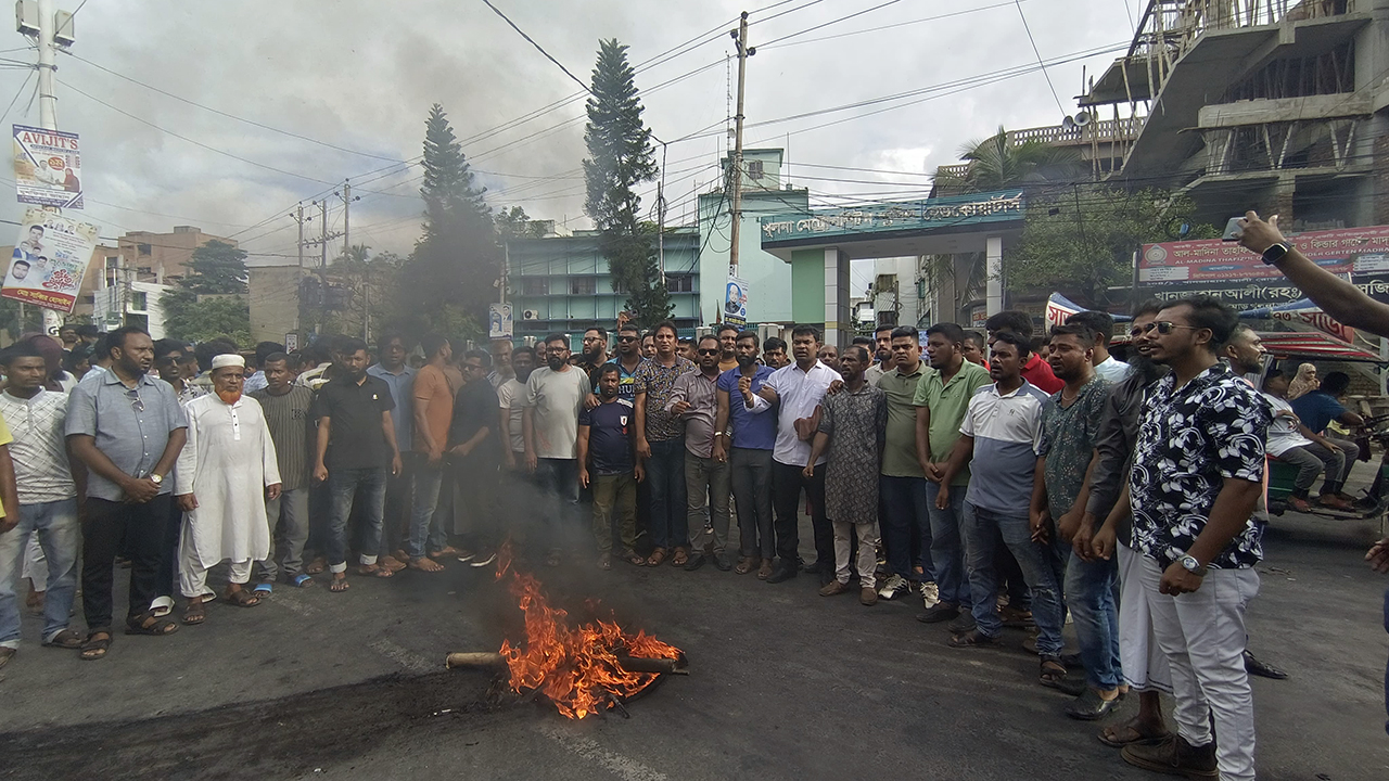 বৃহস্পতিবার (২৬ জুন) বিকেল ৪টা থেকে খানজাহান আলী সড়কে কেএমপির সামনে এই অবস্থান কর্মসূচি শুরু হয়। এ সময় ছাত্র-জনতা কেএমপির সামনের সড়কে টায়ারে আগুন জ্বালিয়ে বিক্ষোভ প্রদর্শন করেন।