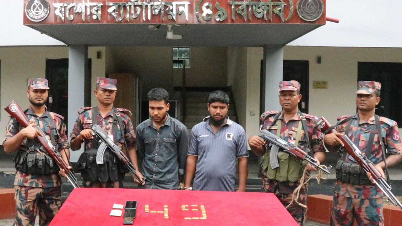 বিজিবি জানায়, গোপন সংবাদের ভিত্তিতে যশোরের মুরাদনগর বাসস্ট্যান্ড থেকে আরিফুল ইসলাম ও মেহেদী হাসানকে আটক করা হয়। পরে তাদের দেহ তল্লাশি করলে কোমরে বিশেষ কায়দার লুকায়িত অবস্থায় ২৩টি স্বর্ণের বার পাওয়া যায়। যার ওজন ৩.০৯৫ কেজি।