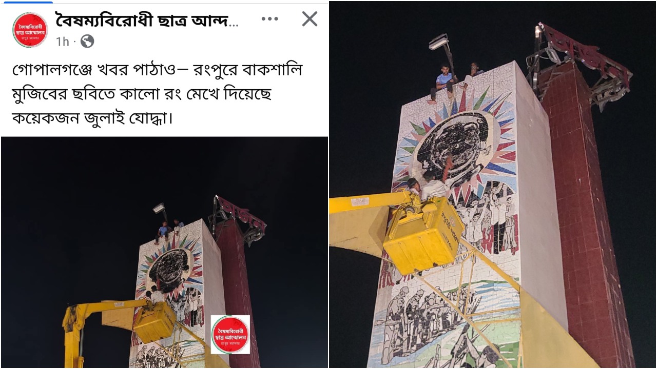 রংপুরে ‘অর্জন’ ভাস্কর্যে থাকা শেখ মুজিবের ছবি মুছে দিলো জুলাই যোদ্ধারা