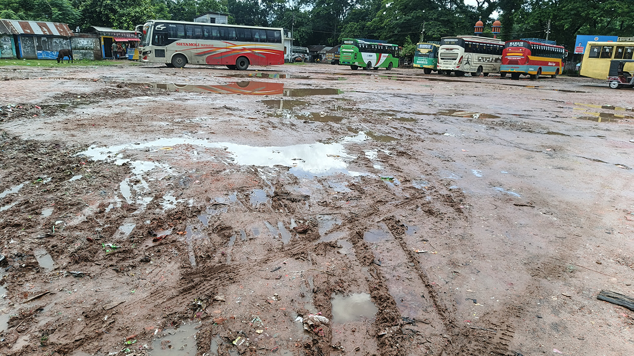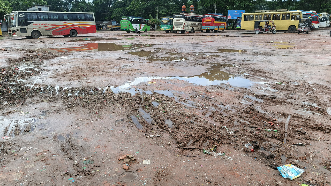 সরেজমিনে গিয়ে দেখা যায়, বাসস্ট্যান্ডের প্রতিটি প্রান্তে খানাখন্দ ও পানি জমে আছে। কোথাও কোথাও মাটি সরে গিয়ে তৈরি হয়েছে বড় গর্ত, আবার কোথাও কাদায় পিচ্ছিল হয়ে উঠেছে চলাচলের পথ। এতে যাত্রীদের গাড়িতে ওঠানামা করাও হয়ে পড়ছে কষ্টসাধ্য। বিশেষ করে নারী, শিশু ও প্রবীণদের জন্য এই দুরবস্থা হয়ে দাঁড়িয়েছে চরম ভোগান্তির উৎস।
