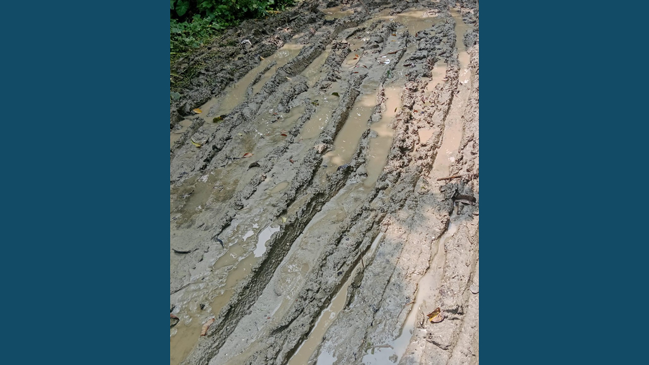 তিন কিলোমিটার রাস্তায় কাদা ও জলাবদ্ধতা