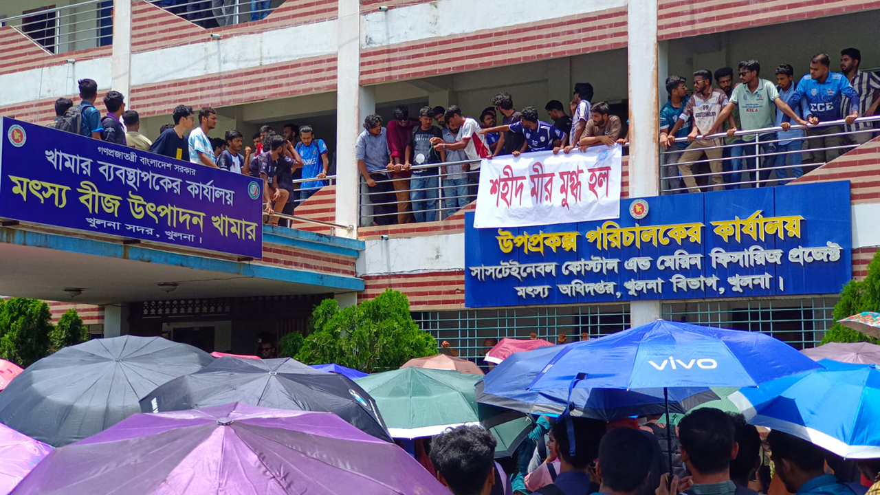 খুলনায় মৎস্য বীজ খামার দখল করে ‘শহীদ মীর মুগ্ধ হল’ ঘোষণা শিক্ষার্থীদের