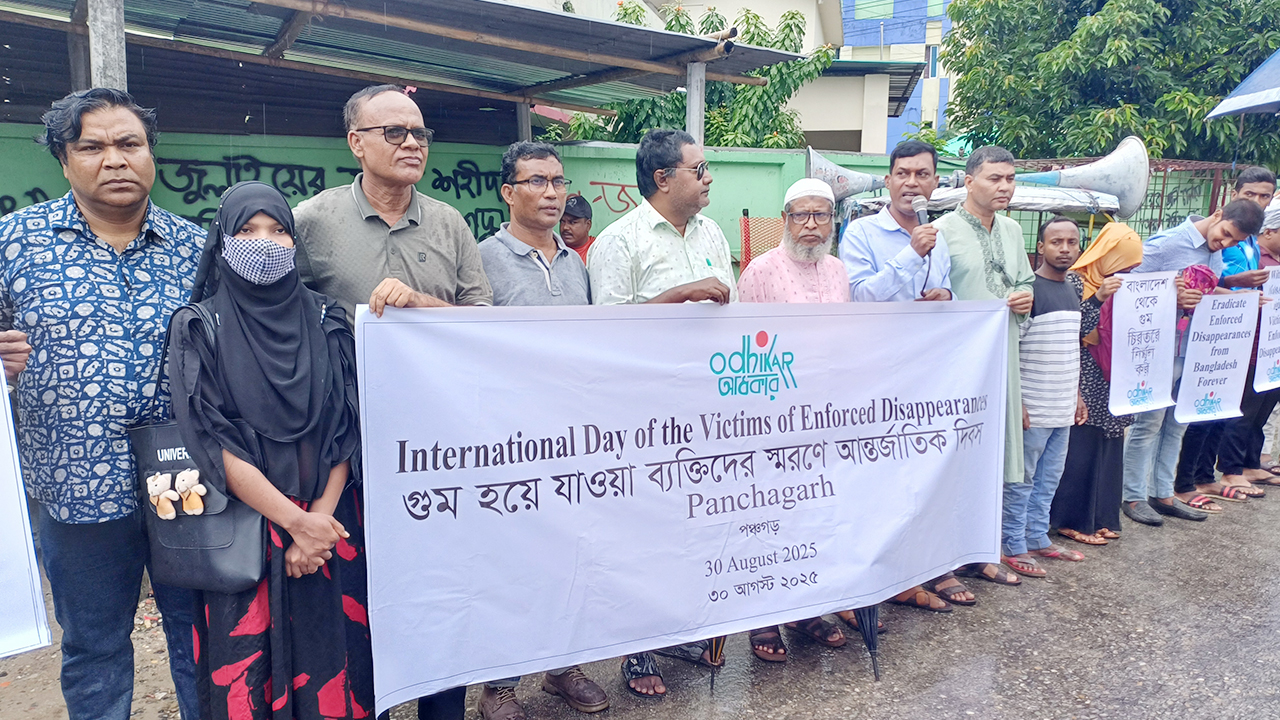 আন্তর্জাতিক গুম প্রতিরোধ দিবস উপলক্ষে শনিবার (৩০ আগস্ট) দুপুরে পঞ্চগড় কেন্দ্রীয় শহীদ মিনারের সামনে পঞ্চগড়-ঢাকা মহাসড়কের পাশে মানবাধিকার সংগঠন ‘অধিকার’ মানববন্ধনের আয়োজন করে। সেখানে বুকভাঙা কষ্টের কথা জানান মিনারা বেগম। তিনি বলেন- আমার ছেলে ১৩ বছর ধরে গুম। জানি না সে বেঁচে আছে নাকি মরে গেছে। যদি আর বেঁচে না থাকে, তবে অন্তত তার হাড়গুলো হলেও আমি ফেরত চাই। আমি অন্তত ওর কবরটা জিয়ারত করতে পারব।