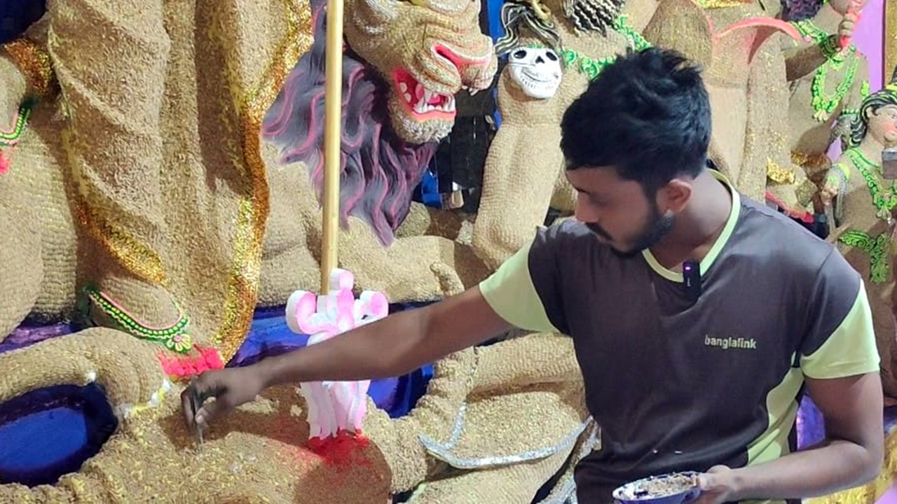 উজ্জ্বল মন্ডল নামের আরেক প্রতিমা শিল্পী ঢাকা পোস্টকে বলেন, আমরা ছয়জন শিল্পী এই মণ্ডপে দীর্ঘ আড়াই মাস ধরে কাজ করছি। মা প্রতিবছরই আমাদের মাঝে আসে এবার আমরা ওনাকে ধান দিয়ে সাজাচ্ছি। ইতোমধ্যেই আমরা দেখছি অনেক দূরদূরান্ত থেকে মানুষ ছুটে আসছে আমাদের এই ধানের তৈরি দুর্গা প্রতিমা দেখতে।
