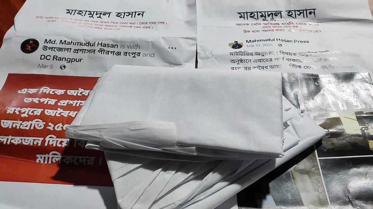উল্লেখ্য, গত ২৯ এপ্রিল বিকেলে কুরিয়ার সার্ভিসে সাংবাদিক মাহমুদুল হাসানের নামে দুটি পার্সেল আসে। এতে দুটি কাফনের কাপড়ের সঙ্গে দুটি প্রিন্ট করা চিঠি ছিল। চিঠিতে হত্যার হুমকি দেওয়া হয়। মাই টিভিতে কয়েকটি ধারাবাহিক সংবাদ প্রকাশ করায় এ ঘটনা ঘটেছে বলে জানান ভুক্তভোগী সাংবাদিক। কাফনের কাপড় ও চিঠিগুলো গাইবান্ধার গোবিন্দগঞ্জ ও রংপুরের গঙ্গাচড়া থেকে পাঠানো হয়। প্রেরকের ঠিকানায় পীরগঞ্জের আরেক সাংবাদিক মিলনের নাম ও ফোন নম্বর ব্যবহার করা হয়।