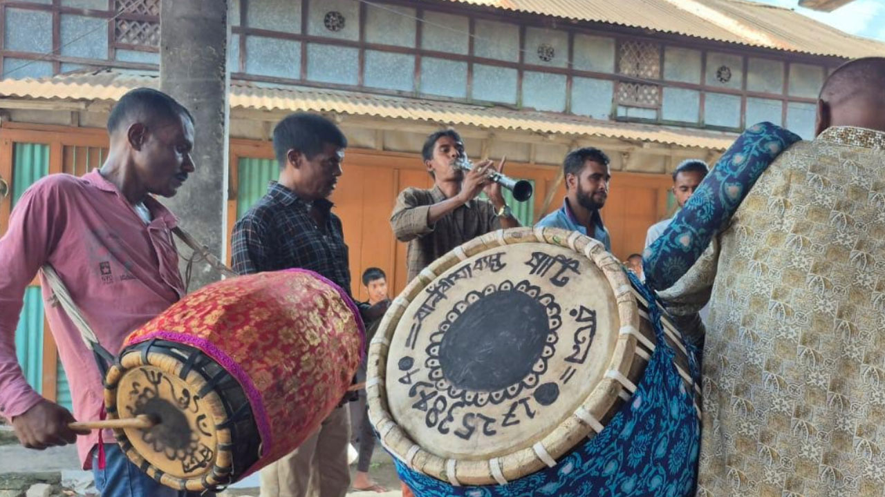 এখানে ঢাক, ঢোল, কাঁসর, সানাই, বাঁশি, কর্তাল, খঞ্জরিসহ বাঙালির চিরচেনা সব বাদ্যযন্ত্র নিয়ে বাদকরা তাদের নৈপুণ্য প্রদর্শনের মহড়ায় মেতে ওঠেন।