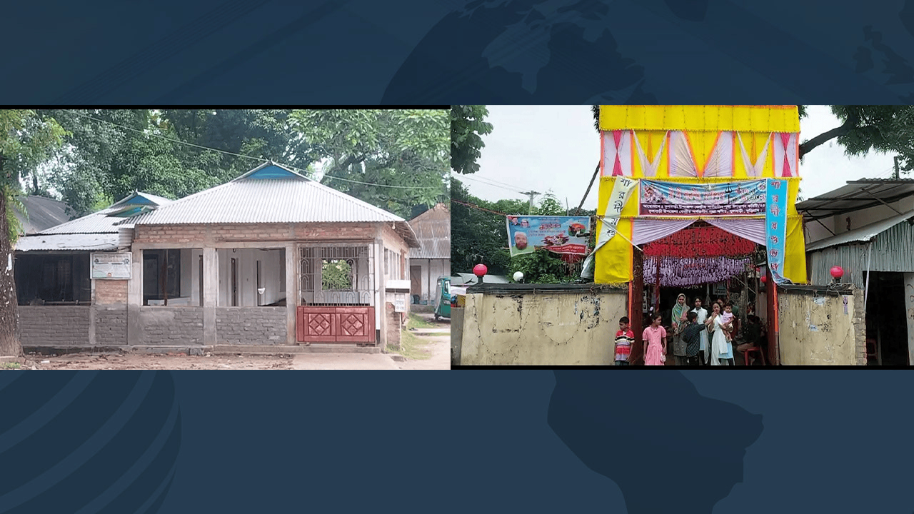 একই মাঠে, মাত্র ৫০ গজ দূরত্বে এক পাশে ‘কাচারী মাঠ জামে মসজিদ’, অন্য পাশে ‘কাচারী মাঠ দুর্গাপূজা কেন্দ্রীয় মন্দির’। চলছে একসঙ্গে উলুধ্বনি, জিকির, আযান আর নামাজ। দুই ধর্মের উপাসনালয় হলেও বিরাজ করছে শান্তি ও সহাবস্থান।