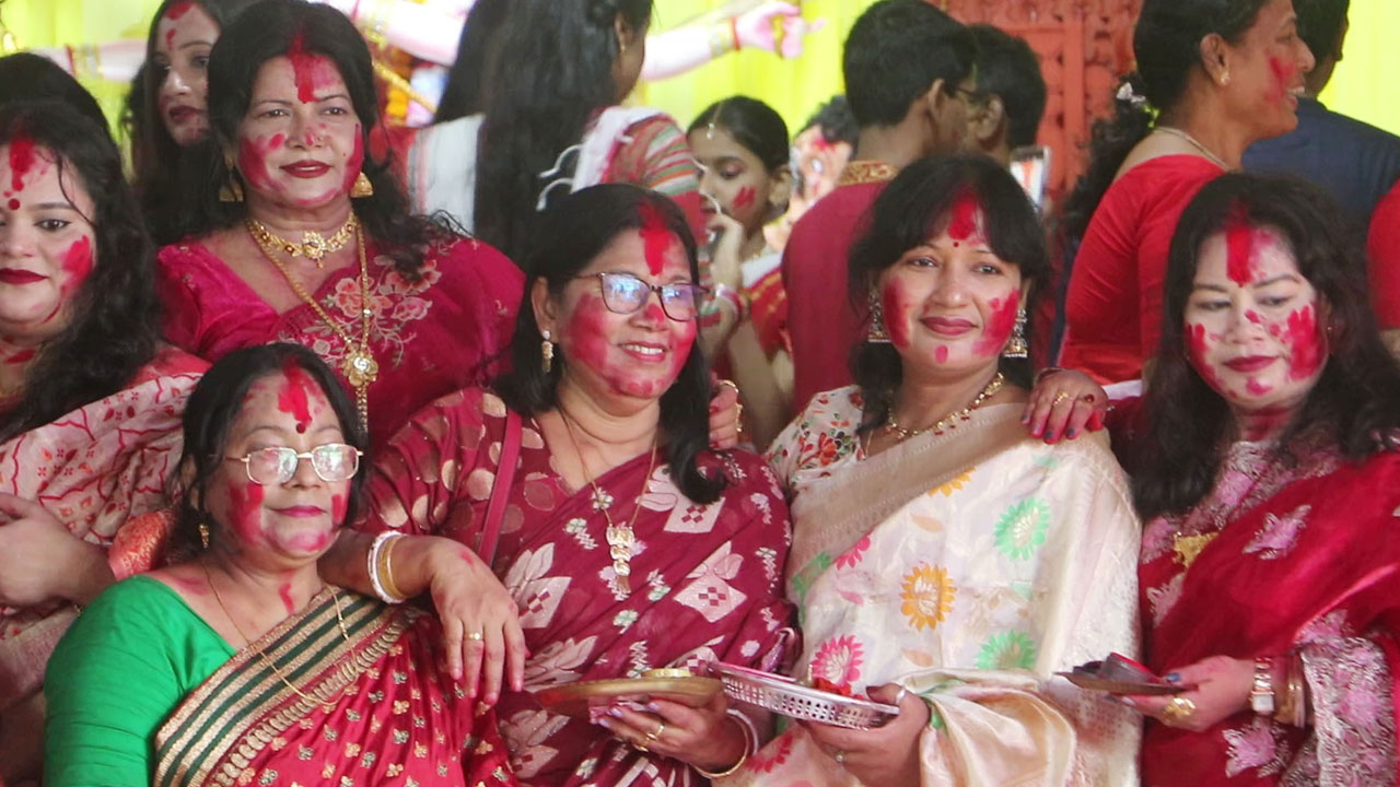 দশমীতে সিঁদুর খেলায় মাতলেন নারীরা