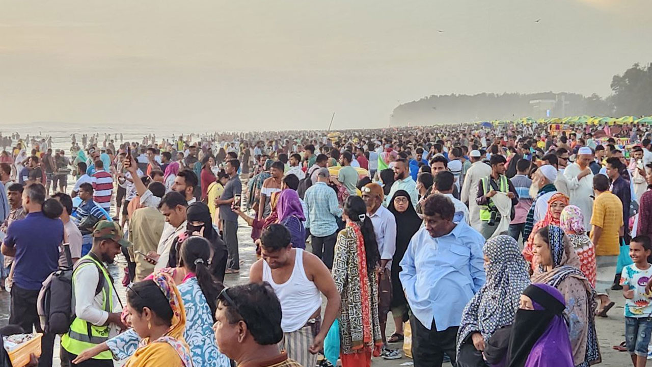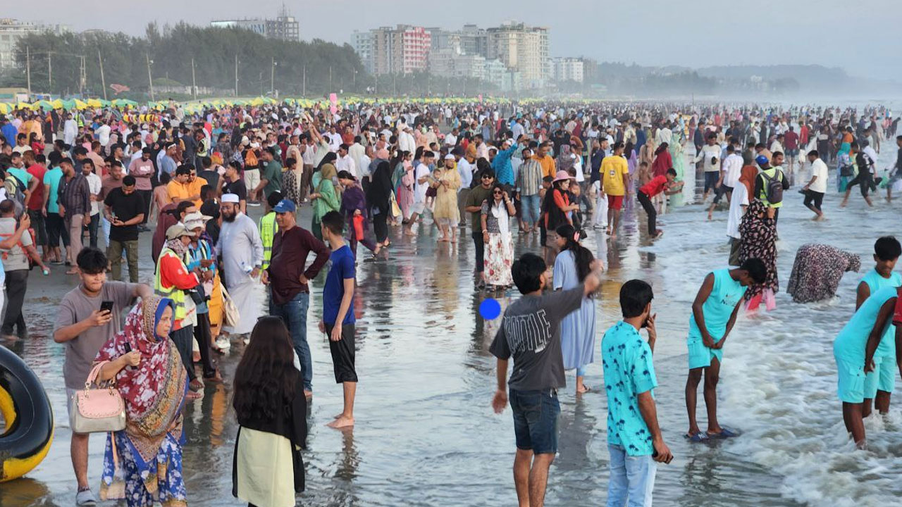 ছুটির শেষ দিনেও কক্সবাজার সৈকতে পর্যটকের ঢল