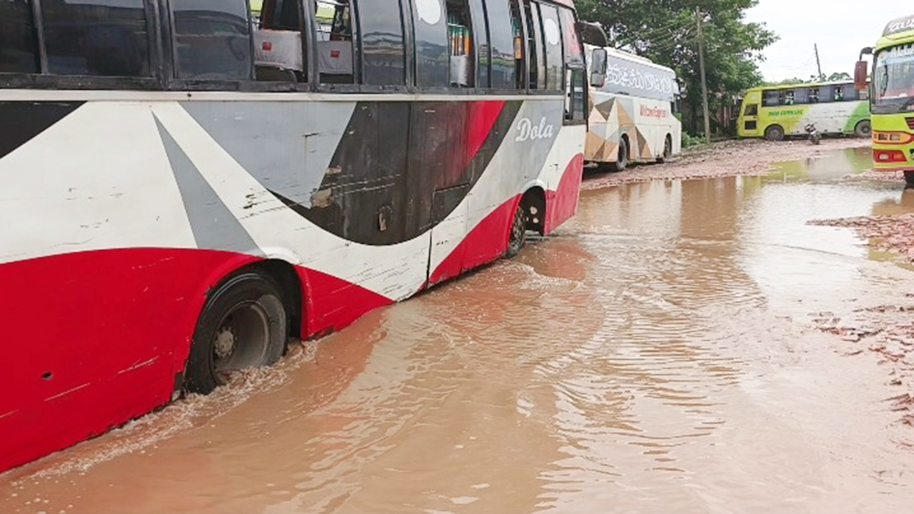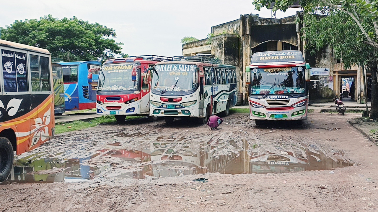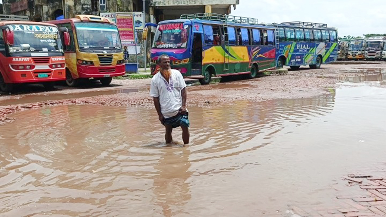 খানাখন্দে ভরা পিরোজপুর কেন্দ্রীয় বাস টার্মিনাল, দুর্ভোগে হাজারো যাত্রী