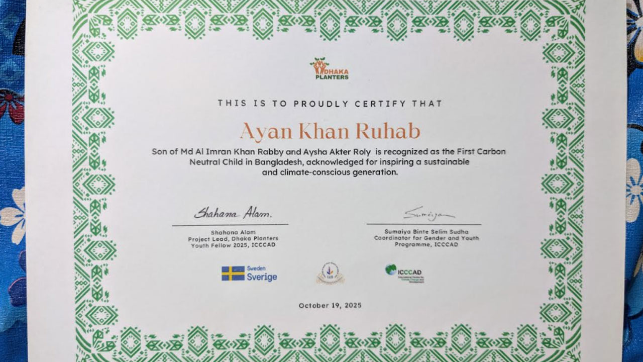 বাংলাদেশের প্রথম কার্বন-নিউট্রাল শিশু রুহাব