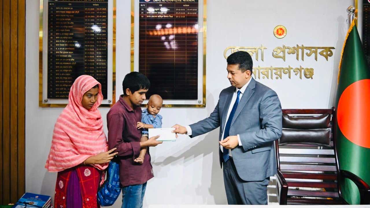 অসহায় মানুষের পাশে দাঁড়িয়ে মানবিকতার এক উজ্জ্বল দৃষ্টান্ত স্থাপন করে চলেছেন নারায়ণগঞ্জের জেলা প্রশাসক মোহাম্মদ জাহিদুল ইসলাম মিঞা। সরকারি দায়িত্ব পালনের পাশাপাশি তিনি প্রতিদিনই মানুষের দুঃখ-দুর্দশার কথা শুনে সহায়তার হাত বাড়িয়ে দিচ্ছেন। গত বুধবার (২২ অক্টোবর) ছিল তার ব্যস্ততম দিনগুলোর একটি। তবুও তিনি সময় বের করেছেন দুটি অসহায় পরিবারের পাশে দাঁড়ানোর জন্য।