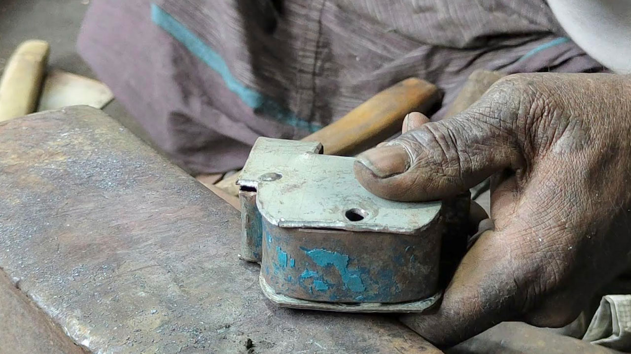 পিরোজপুরের নেছারাবাদ উপজেলার দক্ষিণ সোহাগদল কর্মকার পট্টিতে ঢুকলেই শোনা যায় হাতুড়ির টুংটাং শব্দ। শব্দটা আসে ৭৩ বছরের বৃদ্ধ রাম প্রসাদ কর্মকারের ঝুপড়ি দোকান থেকে। যেখানে প্রতিদিন আগুন, হাতুড়ি আর ঘামের মিশেলে তৈরি হয় ব্রিটিশ আমলের লোহার তালা। এই তালাই তার জীবনের ভরসা, সংসার চালানোর একমাত্র অবলম্বন।