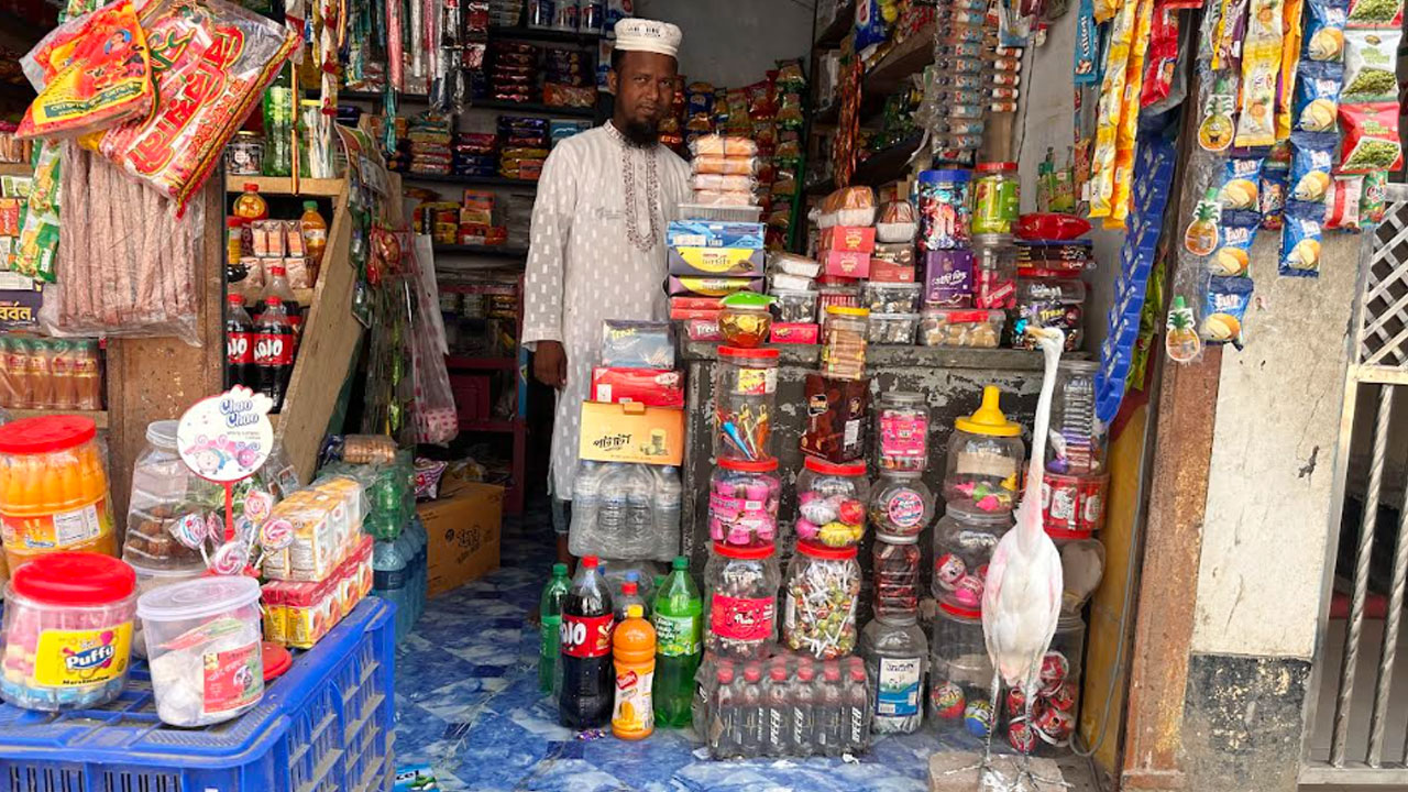 বাজারের কোলাহল আর মানুষের ভিড় উপেক্ষা করে একটি সাদা বক নিশ্চিন্তে দাড়িয়ে থাকে দোকানের সামনে। কিছুক্ষণ পর দোকানের ভেতরে ঢুকে দোকানদার মো. হেমায়েত উদ্দিনের (৩৮) পাশে গিয়ে বসে, যেন বহু দিনের সঙ্গী সে। এমন দৃশ্য দেখা যায় পটুয়াখালীর বাউফল উপজেলার নুরাইনপুর বাজারে।