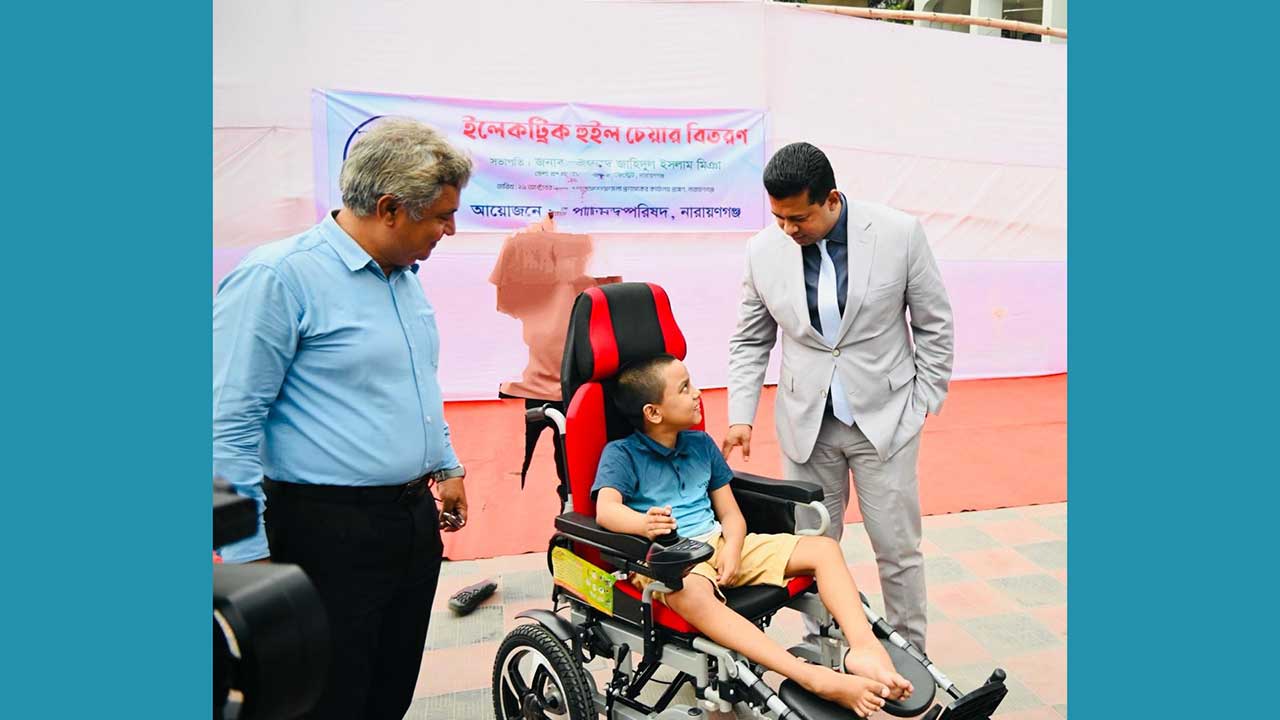 বিরল রোগে আক্রান্ত নারায়ণগঞ্জের শিশু মান্তাহার মাহমুদকে একটি অত্যাধুনিক ইলেকট্রনিক হুইলচেয়ার দিয়েছেন জেলা প্রশাসক জাহিদুল ইসলাম মিঞা। এখন থেকে মান্তাহারকে আর সারাক্ষণ মায়ের কোলে চড়ে কোথাও যেতে হবে না। সে নিজেই এই হুইলচেয়ারটি ব্যবহার করতে পারবে। এর মাধ্যমে নতুন করে পড়াশোনা চালিয়ে যাওয়ার সুযোগ পেল মান্তাহার।
