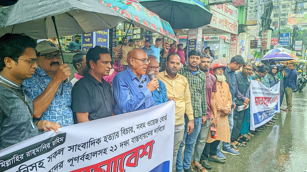 এ সময় সাংবাদিক নেতারা বলেন, আর্থিক ও কর্মক্ষেত্রে নিরাপত্তা এবং স্বাধীন গণমাধ্যম প্রতিষ্ঠায় ‘নো ওয়েজ বোর্ড, নো মিডিয়া’ নীতি কার্যকর, সাংবাদিকদের সর্বনিম্ন বেতন ৩৫ হাজার টাকা নির্ধারণ, প্রিন্ট, ইলেকট্রনিক ও অনলাইন মিডিয়ার জন্য নবম ওয়েজ বোর্ড বাস্তবায়ন ও দশম ওয়েজ বোর্ড গঠন, সাংবাদিক সুরক্ষা নীতিমালা প্রণয়ন, সাংবাদিকদের সাপ্তাহিক ছুটি ২ দিন নির্ধারণ, সাংবাদিক দম্পতি সাগর-রুনিসহ সব সাংবাদিক হত্যার বিচার, গণমাধ্যমের স্বাধীনতাবিরোধী সব কালাকানুন বাতিল, আইন অনুযায়ী সাংবাদিকদের ন্যায্যপাওনা আদায়ের জন্য পৃথক শ্রম আদালত স্থাপন, সংবাদপত্র, অনলাইন, টেলিভিশন, রেডিও ও মাল্টিমিডিয়ার জন্য অভিন্ন ওয়েজ বোর্ড গঠন, সংবাদপত্রের ওপর আরোপিত করপোরেট ট্যাক্সের উচ্চহার ২৭ দশমিক ৫ শতাংশ থেকে কমানোসহ ২১ দফা দাবি অবিলম্বে কার্যকর করতে হবে।