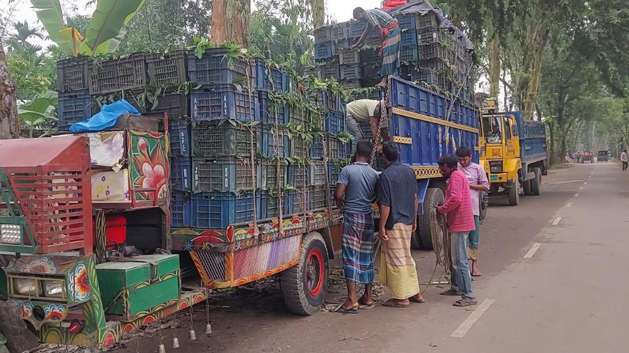 আরেক ক্রেতা বলেন, এখান থেকে কাচামাল ক্রয় করে দেশের বিভিন্ন জেলায় পাঠানো হয়। কিন্তু লাভের মুখ তো দেখেনি। বরং শ্রমিক মজুরি, গাড়ি ভাড়াসহ সব মিলে দিন শেষে দেখা যায় আরও ঘাটতি। তারপর আবার অনেক সময় কাচামাল নষ্ট হয়ে যায়, সেখানেও লস। ৪ দিন ধরে টানা বৃষ্টি কাঁচামাল ক্ষেত্র থেকে তুলে আনা হয়েছে কিন্তু গাড়িতে লোড করা যাচ্ছে না। এতে অনেক সবজি নষ্ট হয়ে গেছে।