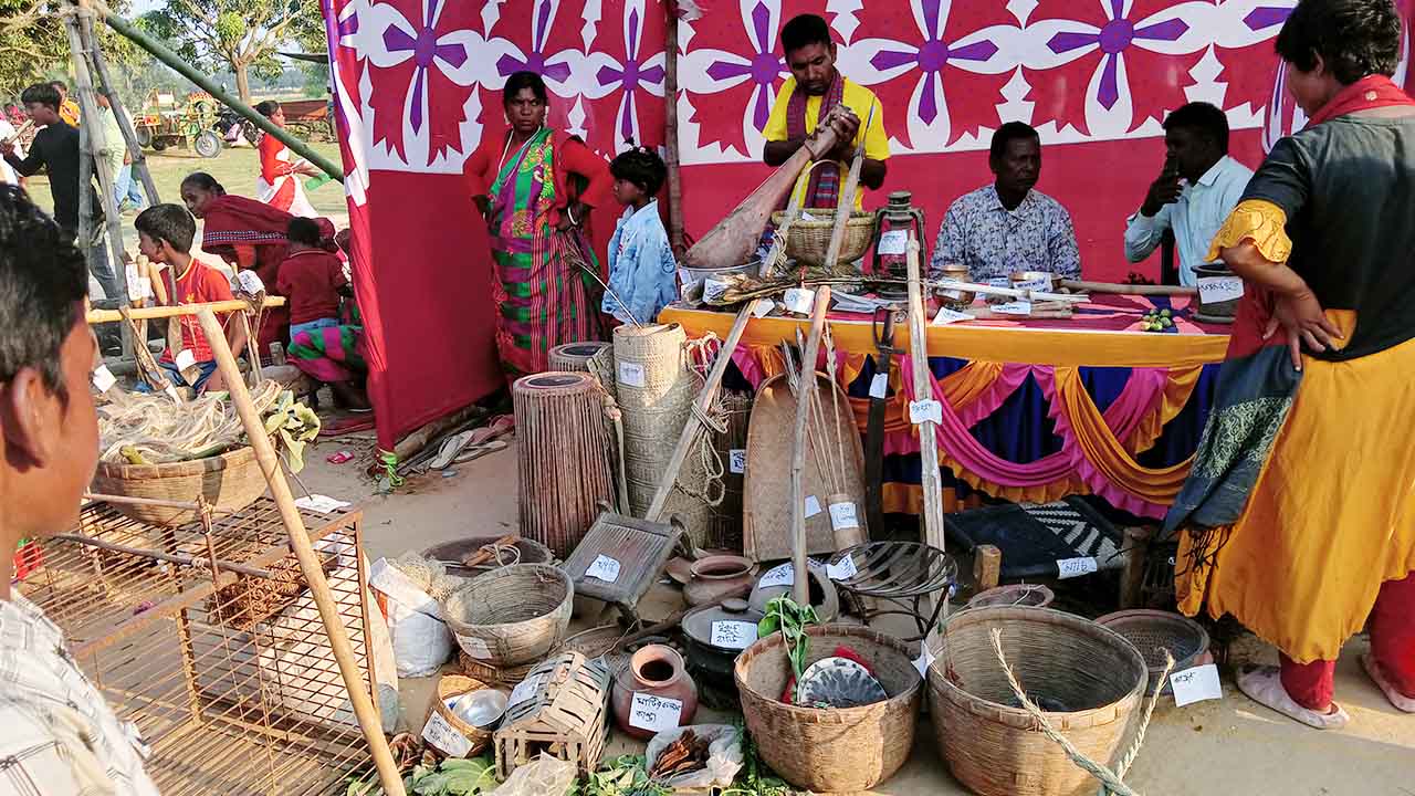 এর আগে অস্থায়ী মঞ্চের সামনে সাঁওতাল, মাহালি, পাহাড়িয়া, মুন্ডা, রাজোয়াড়, গড়াইত, রায়, কোল, মাহাতো, লহড়া এসব ক্ষুদ্র নৃ-গোষ্ঠীর সদস্যরা বর্ণিল সাজে নেচে-গেয়ে তুলে ধরেন তাদের নান্দনিক ও বৈচিত্র্যময় সংস্কৃতি। পাশাপাশি অনুষ্ঠিত হয় বিয়ে ও কারাম গীতের সুর, দাশাই নৃত্যের ছন্দ, আমলোবান ও ঝুমুর গানের প্রতিযোগিতা। রঙিন পোশাক, নাচ ও গানে মেলা প্রাঙ্গণ পরিণত হয় বৈচিত্র্যের রঙে আঁকা এক জীবন্ত ক্যানভাসে।
