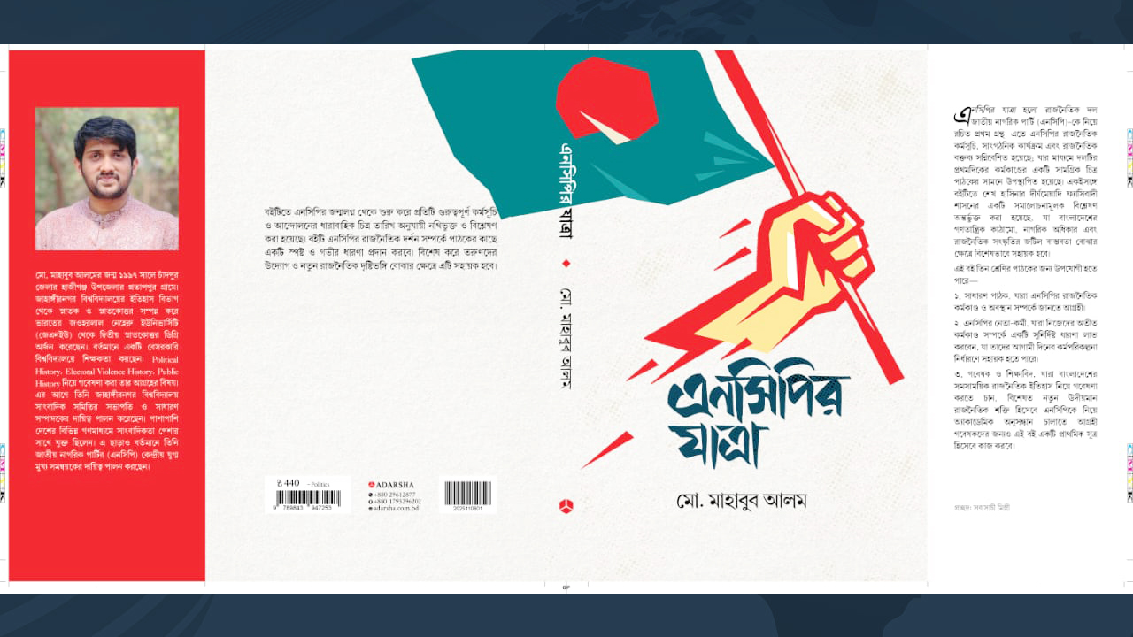 জুলাই অভ্যুত্থান থেকে জন্ম নেওয়া রাজনৈতিক দল জাতীয় নাগরিক পার্টি (এনসিপি) নিয়ে রচিত প্রথম গ্রন্থ ‘এনসিপির যাত্রা’ প্রকাশিত হতে যাচ্ছে আগামী ১৫ নভেম্বর। বইটি লিখেছেন এনসিপির যুগ্ম মুখ্য সমন্বয়ক ও সহ-শিক্ষা সম্পাদক মাহাবুব আলম। প্রকাশ করবে আদর্শ প্রকাশনী।