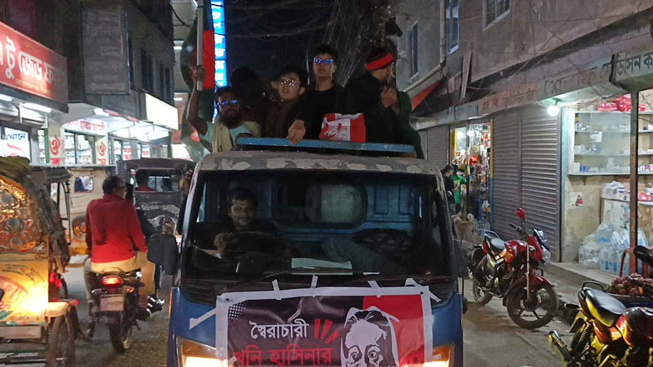 সোমবার (১৭ নভেম্বর) রাতে সাড়ে ৮টার দিকে পিরোজপুরের পুরাতন বাস স্ট্যান্ড থেকে পিকআপে একটি আনন্দ শোভাযাত্রা বের হয়। পরে শোভাযাত্রা চলাকালীন স্থানীয় মানুষের মধ্যে মিষ্টি বিতরণ করা হয়। শোভাযাত্রাটি শহরের শহীদ মিনার প্রাঙ্গণে এসে শেষ হলে সেখানে থাকা জুলাই শহীদ স্মৃতিস্তম্ভে মোমবাতি প্রজ্জ্বলন করেন তারা।