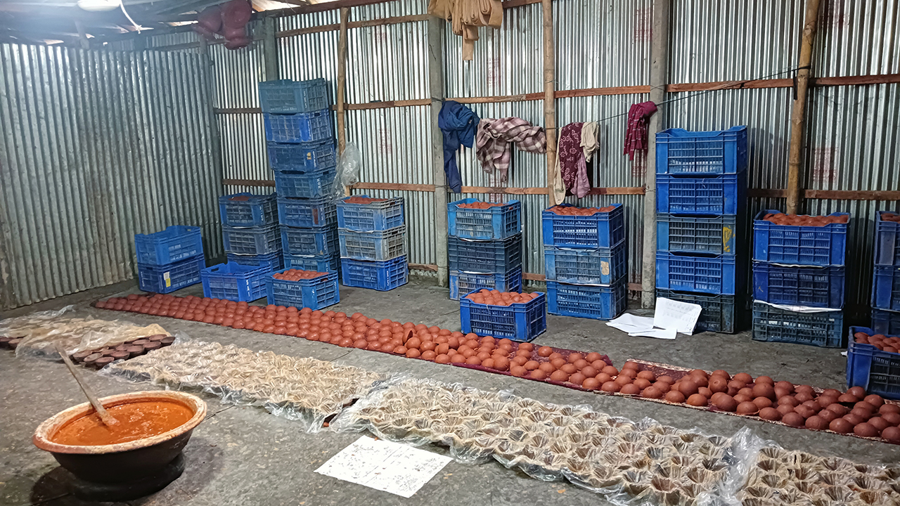 সরেজমিনে ওই গ্রামে গিয়ে গুড় তৈরির তিনটি কারখানা দেখা যায়। কারখানাগুলোতে আখ বা খেজুরের রসের কোনো বালাই নেই। তবুও তৈরি হচ্ছে গুড়। কারখানার ভেতর দেখা গেছে কড়াইয়ে গুড় তৈরি হচ্ছে। তার পাশেই বিভিন্ন খাঁচের ওপর ফেলে দেওয়া হচ্ছে আকৃতি। তৈরি হওয়া গুড়গুলো পরবর্তীতে স্থানীয় বাজারসহ বিভিন্ন বাজারে পাঠানো হয়।