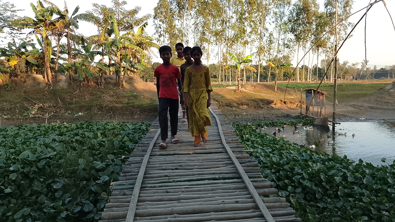 ‘বাড়ি থাকি হাফ মাইল দূরে স্কুল, ব্রিজের অভাবে যেতে হয় তিন মাইল ঘুরে। সময় লাগে বেশি, পায়ে হাঁটি যেতে খুব কষ্ট হয়। সাঁকো দিয়ে যেতে ভয় লাগে, কখন জানি পানিত পরি যাই। তাই এই মরণ ফাঁদ দিয়ে বাধ্য হয়ে যাতায়াত করছি। একটা ব্রিজ হলে আমাদের স্কুলে যেতে সুবিধা হতো।’ এভাবেই কথাগুলো বলছিল কুড়িগ্রামের উলিপুর পৌরসভার বলদিপাড়া এলাকার ৫ শ্রেণির শিক্ষার্থী মরিয়ম খাতুন।