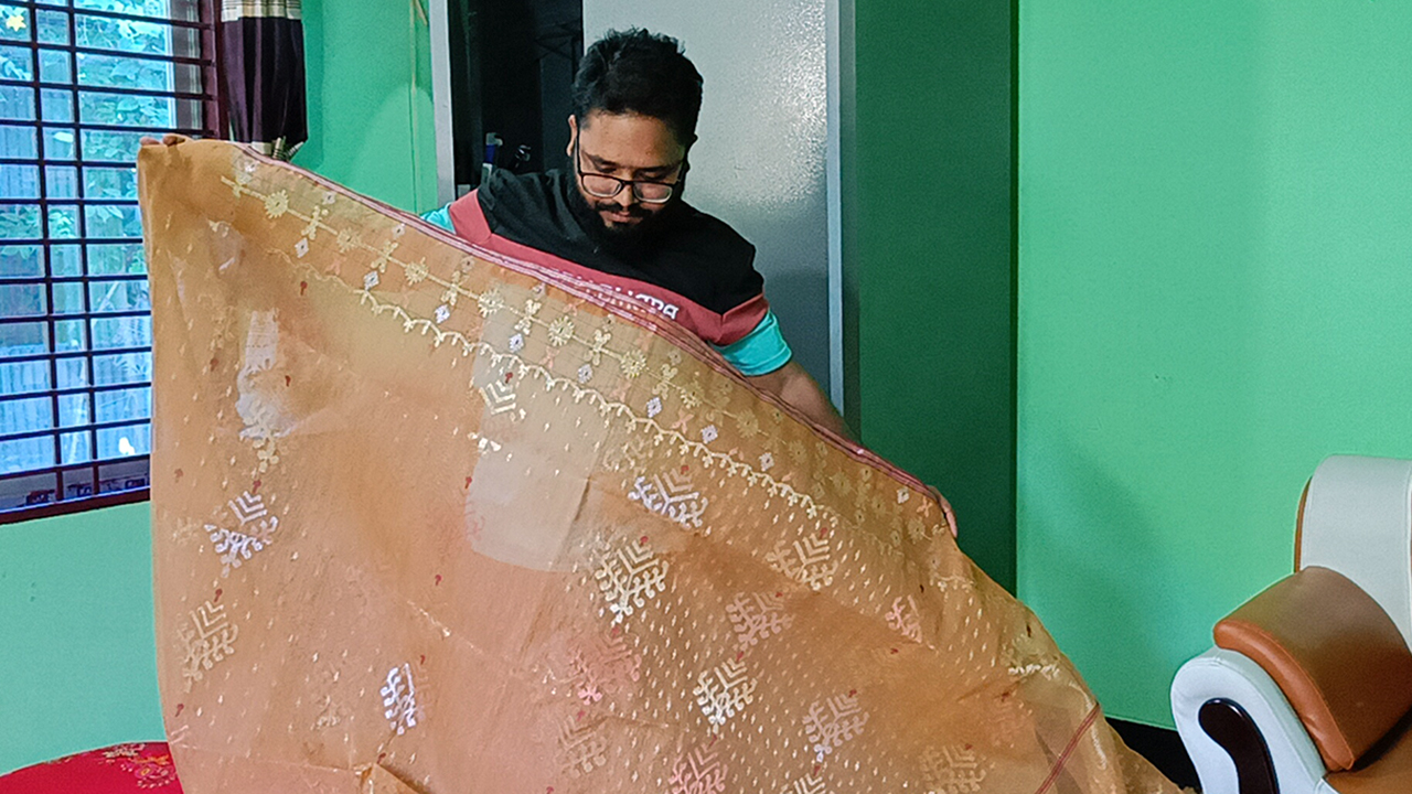 রেশমি সুতা, সুতি সুতা ও জরি দিয়ে এ শাড়িগুলো তৈরি করা হয়। একটা শাড়িতে ২ হাজার ২০০ থেকে ২ হাজার ৪০০ রেশমি সুতার সারি থাকে। রেশমি সুতা কেনা হয় রাজশাহী থেকে। একটি শাড়ির পেছনে সুতার খরচ বাবদ ব্যয় হয় অন্তত ২ হাজার টাকা। সুতা কেনা থেকে শুরু করে কারিগরদের বেতন দেওয়ার পরও প্রতিমাসে তার ৫০ থেকে ৬০ হাজার টাকা লাভ থাকে।