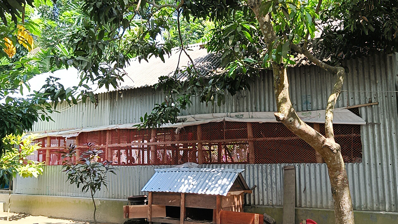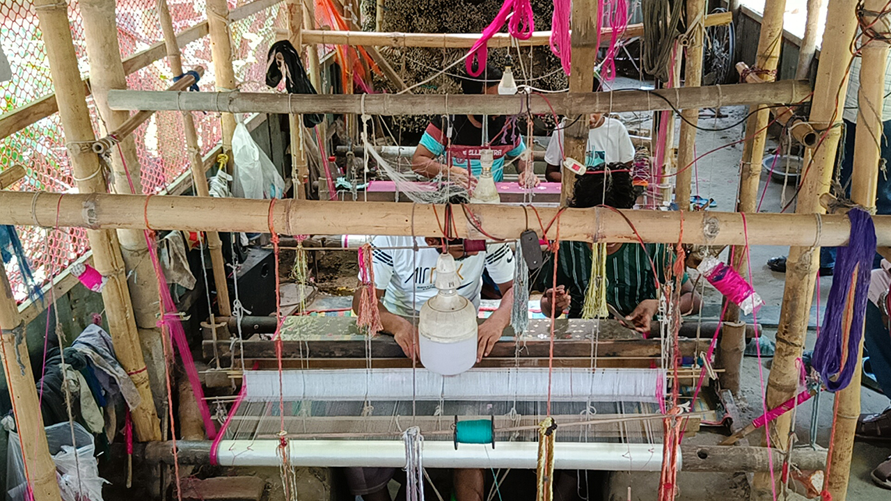 আনুমানিক ৩০ ফুট দৈর্ঘ্য ও ১০ ফুট প্রস্থবিশিষ্ট একটি টিনের ঘর। ঘরের দুই পাশের বেড়ায় টিন কেটে মাঝে জালি বসানো হয়েছে, যাতে ঘরে আলো-বাতাস ঢুকতে পারে। এর মধ্যে সারিভাবে সাজানো রয়েছে ছয়টি তাত। প্রতি তাতে দুজন করে একসঙ্গে ১২ জন কাজ করতে পারেন।
