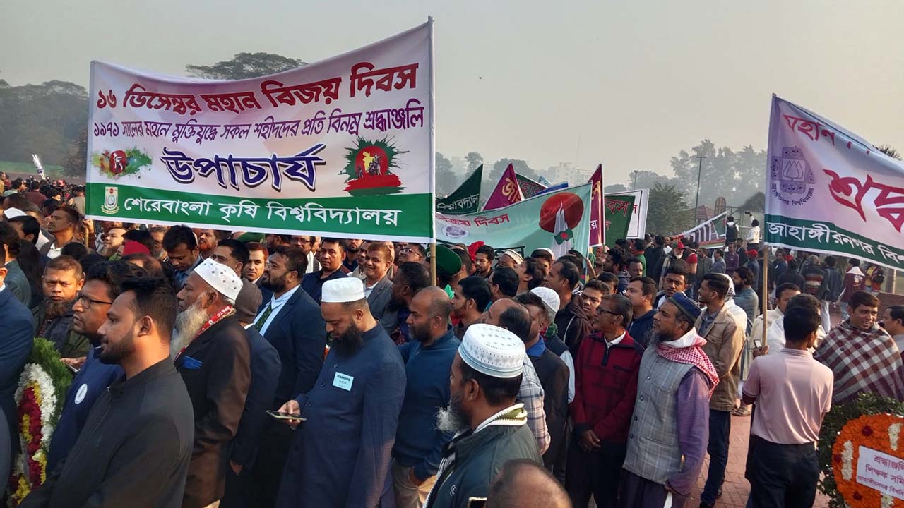 সরেজমিনে দেখা যায়, বিভিন্ন সংগঠন ও স্কুল-কলেজের শিক্ষার্থী, রাজনৈতিক ব্যক্তিবর্গ, মুক্তিযোদ্ধা ও মুক্তিযোদ্ধার পরিবারের সদস্যরা স্মৃতিসৌধ প্রাঙ্গণে ভিড় করছে। এদের হাতে ফুল, ব্যানার ও ফেস্টুন নিয়ে স্মৃতিসৌধ প্রাঙ্গণে আসছেন শ্রদ্ধা ও ফুলের পুষ্পস্তবক অর্পণ করে বীর সন্তানদের শ্রদ্ধা জানাতে। এতে ফুলে ফুলে ভরে উঠেছে বীর শহীদদের বেদী।