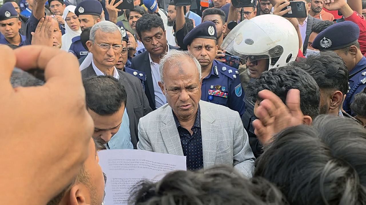 অনুষ্ঠান শেষে ফেরার পথে ছাত্রনেতারা তার পথরোধ করেন। তারা জুলাই গণ-অভ্যুত্থানের সময় লুট হওয়া অস্ত্র উদ্ধার, আওয়ামী লীগ ও ওসমান পরিবারের সদস্য এবং তাদের সহযোগীদের গ্রেপ্তার, সীমান্তে নিরাপত্তা জোরদার, গুলিবিদ্ধ ওসমান হাদির ওপর হামলার মূল আসামিকে গ্রেপ্তার, থানা ও আদালতকে রাজনৈতিক প্রভাবমুক্ত রাখাসহ সাত দফা দাবি জানান।