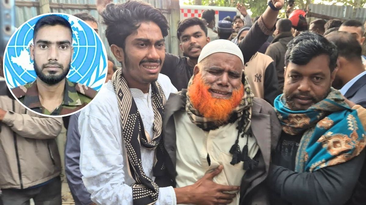 ‘আমার আব্বা (ছেলে) আমাকে ছাড়া কিছু বুঝত না। আমি ওকে কোনো দিন কষ্ট দিইনি, সেও আমাকে কোনো দিন কষ্ট দেয়নি। আজ আমার ছেলেটা চলে গেল। সবাই ওর জন্য আল্লাহর কাছে দোয়া করবেন।’ সুদানে জাতিসংঘ শান্তিরক্ষা মিশনে দায়িত্ব পালনকালে শাহাদাত বরণকারী সেনাসদস্য শামীম রেজার জানাজার আগে কান্নজড়িত কণ্ঠে এভাবেই কথাগুলো বলছিলেন তার বাবা আলমগীর ফকির।