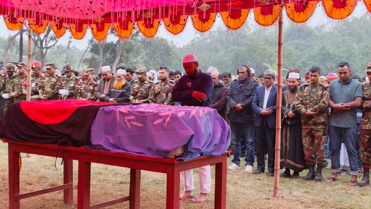 সুদানে জাতিসংঘ শান্তিরক্ষা মিশনে সন্ত্রাসীদের ড্রোন হামলায় নিহত নাটোরের সন্তান করপোরাল মাসুদ রানাকে রাষ্ট্রীয় মর্যাদায় দাফন করা হয়েছে।