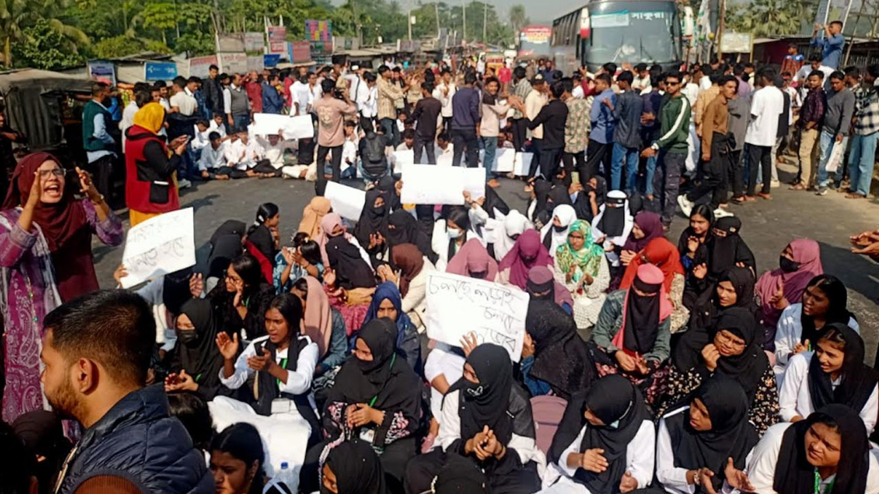 কৃষি ডিপ্লোমা শিক্ষার্থীদের ঢাকা-বরিশাল মহাসড়ক অবরোধ