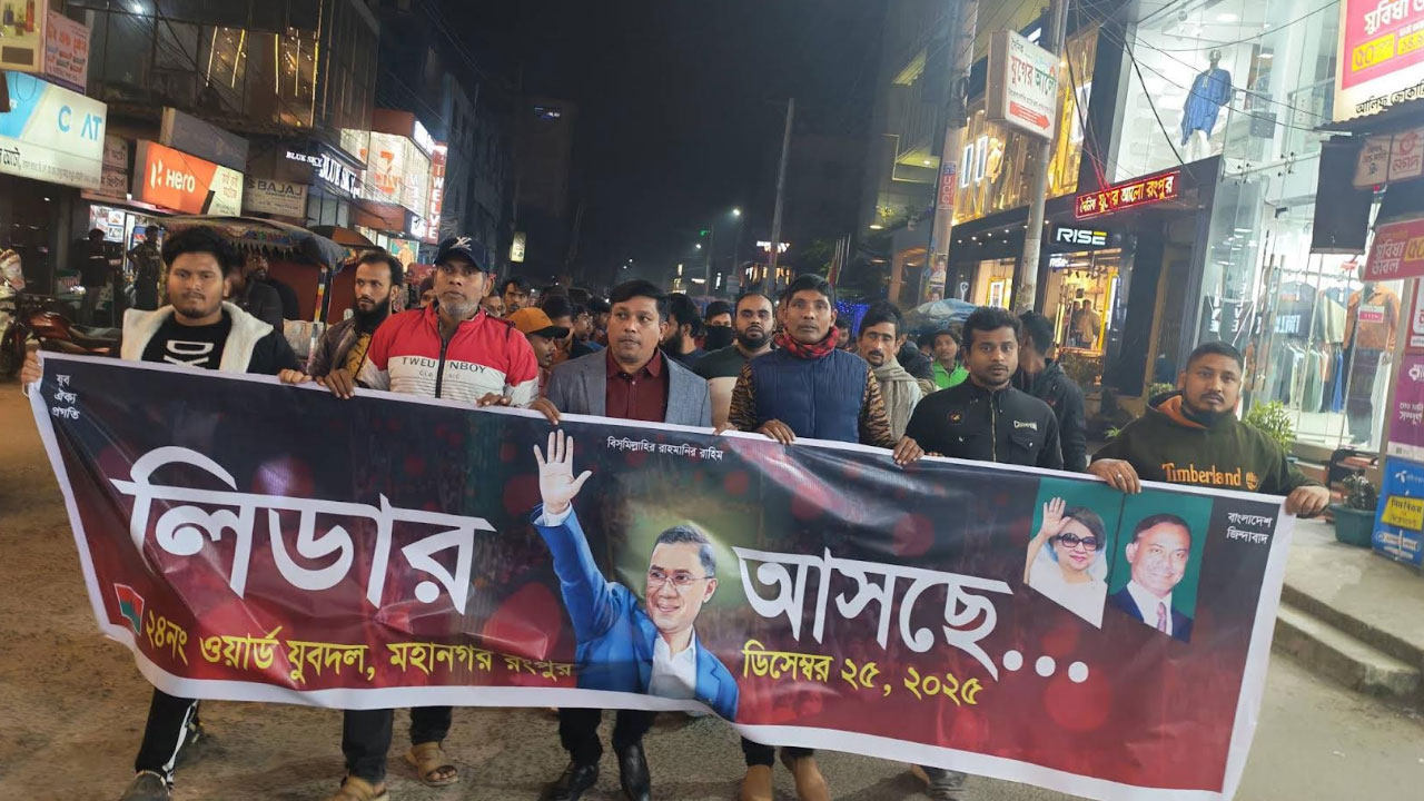 রংপুর মহানগর যুবদলের সিনিয়র যুগ্ম আহ্বায়ক জহির আলম নয়ন ঢাকা পোস্টকে বলেন, বিএনপির ভারপ্রাপ্ত চেয়ারম্যান তারেক রহমানকে স্বদেশে স্বাগত জানিয়ে যুবদল নগরীর ৩৩টি ওয়ার্ডের পাড়া-মহল্লায় কয়েকদিন প্রতিদিন শুভেচ্ছা মিছিল করে আসছে। আমাদের অনেক নেতাকর্মী ঢাকার আয়োজনে যোগ দিতে আগাম রওনা দিয়েছেন। কেউ কেউ ঢাকায় এখন অবস্থান করছেন। আমাদের প্রস্তুতি সভাগুলোতে সিদ্ধান্ত হয়েছে ব্যক্তি উদ্যোগের বাইরে দলবদ্ধভাবে বাস, ট্রেনসহ অন্যান্য পরিবহনের মাধ্যমে মহানগর, থানা, ওয়ার্ড কমিটির নেতাকর্মীরা ঢাকায় যাবেন। এছাড়া জেলার বিভিন্ন প্রান্ত থেকে ছোট বড় নেতাকর্মীরা ঢাকামুখী যাত্রা শুরু করেছেন। কেউ যাচ্ছেন দলীয় পরিবহনে, কেউ আবার ব্যক্তিগত উদ্যোগে।