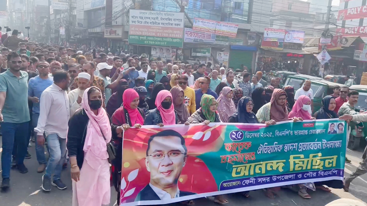 অন্যদিকে, মঙ্গলবার (২৩ ডিসেম্বর) তারেক রহমানের এই আগমন উপলক্ষ্যে ফেনী জেলা বিএনপির আওতাধীন বিভিন্ন ইউনিটের নেতাকর্মীরা আনন্দ মিছিল করেছেন।