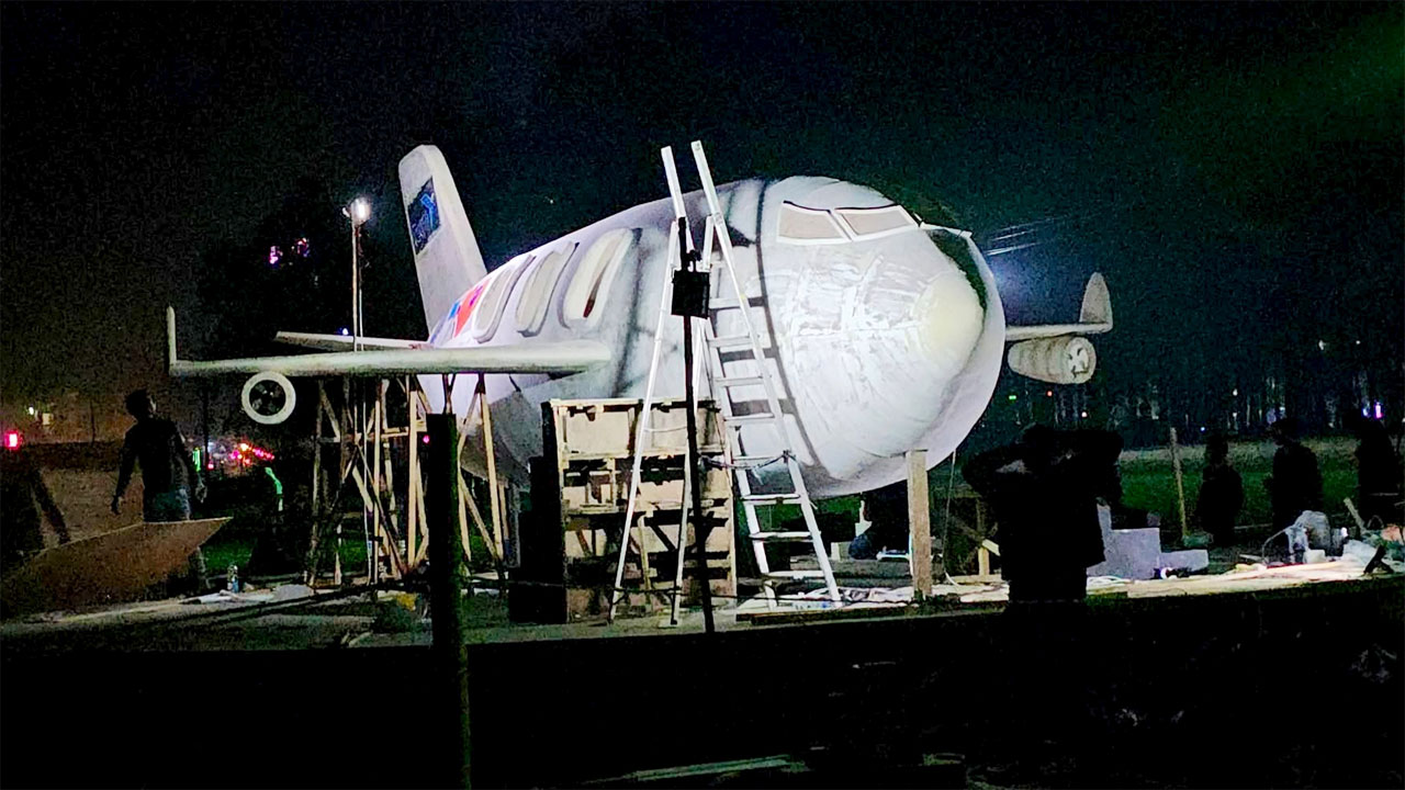 বুধবার (২৪ ডিসেম্বর) রাত ৮ টার দিকে সৈকতের সুগন্ধা পয়েন্টে দেখা যায়, বালিয়াড়িতে বিমানের বিশাল আকৃতির একটি অস্থায়ী স্থাপনার নির্মাণযজ্ঞ চলছে যার দৈর্ঘ্য প্রায় ৩০ ফুট এবং প্রস্থে ১৫ ফুট।